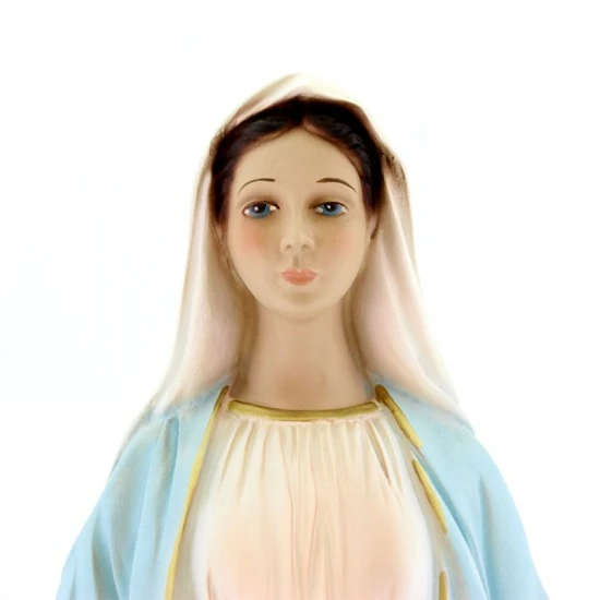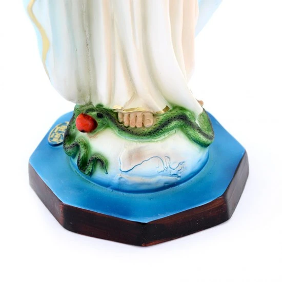 Statua della Madonna Miracolosa. Statua in resina colorazione patinata della Madonna Miracolosa con il serpente sotto i piedi. Adatta anche per esterno. Completa di scatola.