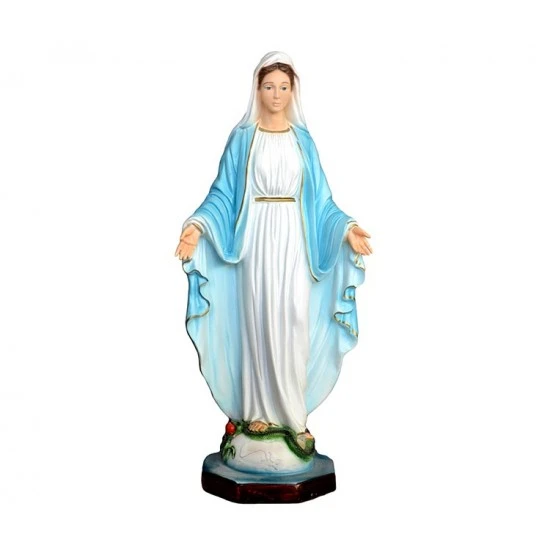Statua Madonna Miracolosa realizzata interamente in resina e dipinta a mano con colori indelebili. Produzione artigianale eseguita in un piccolo laboratorio dalla grande esperienza nella lavorazione di tutte le sculture sacre, questi artigiani curano ogni pezzo con la massima attenzione e cura per i particolari al fine di rendere ogni opera unica ed originale. Made in Italy