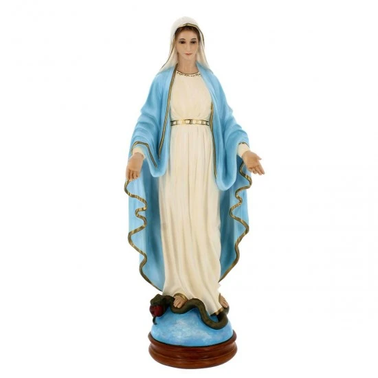 Statua Madonna Miracolosa realizzata interamente in resina e dipinta a mano, impreziosita da occhi in vetro che donano grande espressività al volto. Questa scultura è curata nei minimi particolari e realizzata in un materiale adatto anche per esterno. Ideata dall’azienda Landi, pone su tutte le sue sculture il proprio marchio. Made in Italy