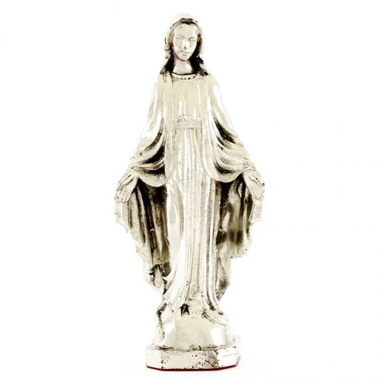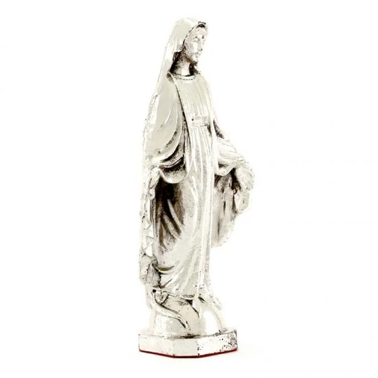 Statua Madonna Miracolosa realizzata interamente in resina argentata. Produzione artigianale eseguita in un piccolo laboratorio dalla grande esperienza nella lavorazione di tutte le sculture sacre. Made in Italy