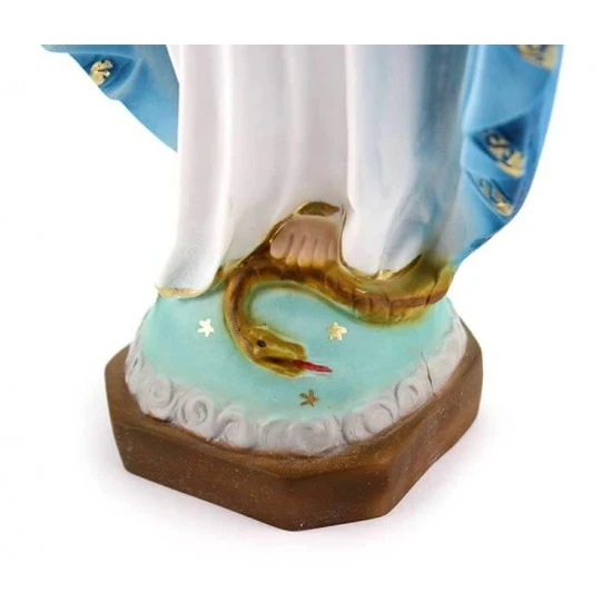 Statua Madonna Miracolosa realizzata interamente in resina piena e dipinta a mano con colori indelebili. Produzione artigianale eseguita in un piccolo laboratorio dalla grande esperienza nella lavorazione di tutte le sculture sacre, questi artigiani curano ogni pezzo con la massima attenzione e cura per i particolari al fine di rendere ogni opera unica ed originale. Made in Italy