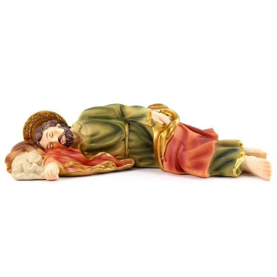 Statua San Giuseppe Dormiente, realizzata interamente in resina colorata completa di elegante scatola.