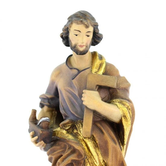 Statua San Giuseppe falegname realizzata in legno di acero naturale e successivamente dipinta a mano con colori ad olio, lavorazione artigianale eseguita con la massima cura per i particolari. Prodotto esclusivo realizzato in un laboratorio altamente qualificato e con grande esperienza nella lavorazione di sculture sacre. Made in Italy
