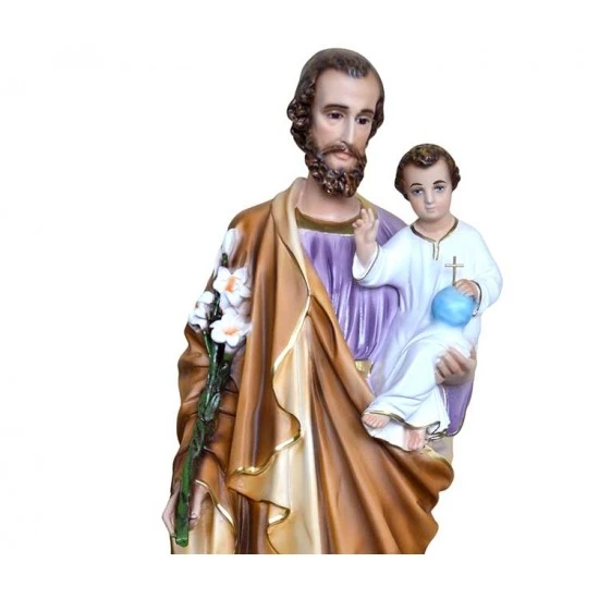 Statua San Giuseppe realizzata interamente in RESINA dipinta a mano con colori indelebili e resistenti alle intemperie. Lavorazione e produzione artigianale eseguita in un laboratorio con grande esperienza decennale nella produzione di sculture sacre, questi artigiani curano ogni opera con la massima attenzione verso tutti i particolari al fine di rendere ogni pezzo unico ed originale. Made in Italy