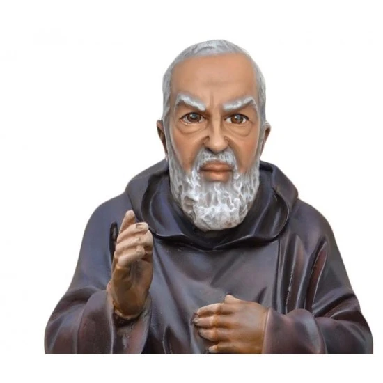 Statua San Padre Pio, realizzata interamente in RESINA dipinta a mano con colori indelebili. Produzione artigianale eseguita in un piccolo laboratorio dalla grande esperienza nella lavorazione di tutte le sculture sacre, questi artigiani prestano la massima attenzione e cura per ogni particolare al fine di rendere le loro opere uniche ed originali. Made in Italy