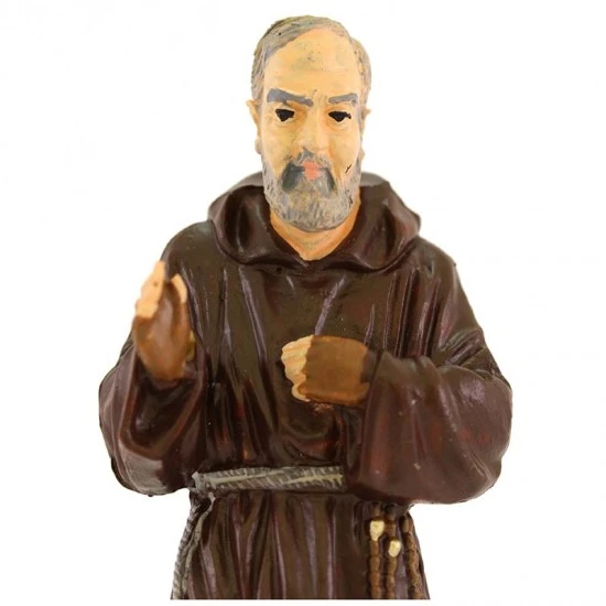 Statua San Pio da Pietrelcina realizzata interamente in resina siliconica colorata. Prodotto infrangibile di ottima fattura e ben rifinito, adatto anche per esterno. Lavorazione e produzione artigianale eseguita in un laboratorio con grande esperienza decennale nella produzione di sculture sacre. Made in Italy